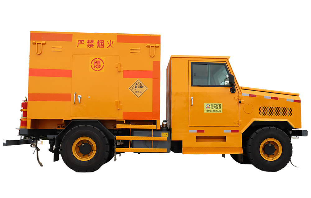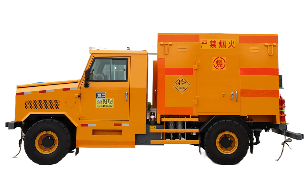 地下無軌爆破器材運輸車是專門為地下礦山設計的一種專用運輸設備,可改善勞動條件、緩解人員疲勞,保證運輸安全,提高生產效率,是礦山安全生產和現代化礦山不可缺少的運輸設備。